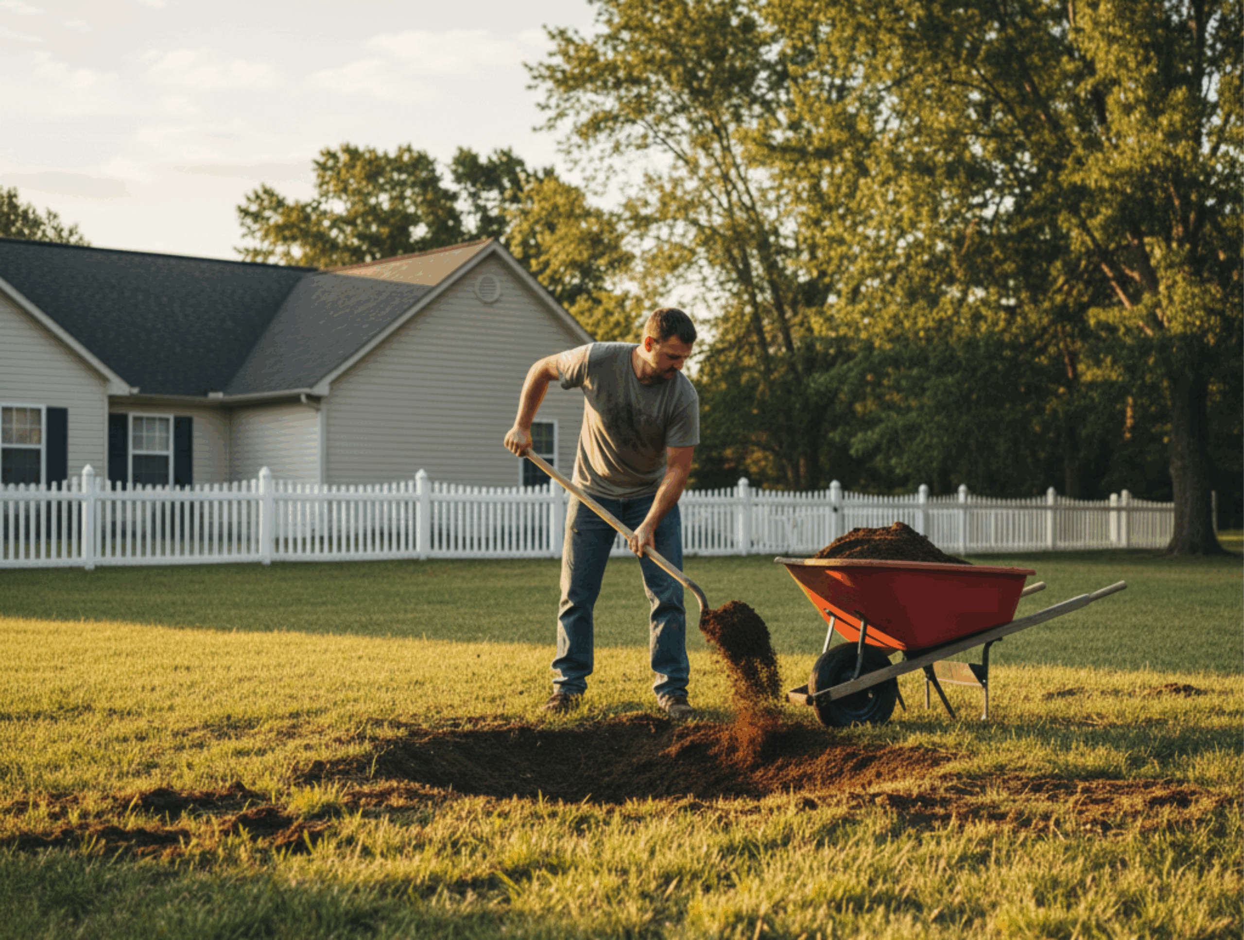 Fill the hole with high-quality topsoil, ensuring it is compacted to prevent settling. This creates a solid base for future plantings or lawn restoration. Use a shovel to spread the soil evenly, then tamp it down lightly to reduce air pockets and ensure stability.